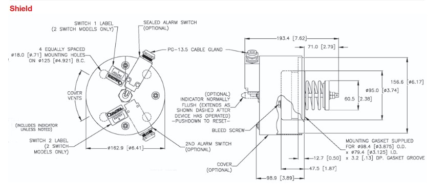 El Dispositivo de Alivio de Presión Media (MPRD) está diseñado para condiciones de sobrepresión en transformadores llenos de aceite, cambiadores de derivación bajo carga (LTC) y otros equipos eléctricos relacionados.