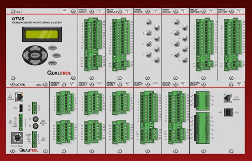 Diseñado para admitir hasta 14 módulos, QTMS permite integrar entradas digitales y analógicas, así como monitoreo de temperatura mediante fibra óptica y monitoreo de hasta 6 bushings. El sistema puede configurarse con 1 a 14 módulos, combinando entradas digitales y analógicas según los sensores y parámetros requeridos para el activo que se desea supervisar.