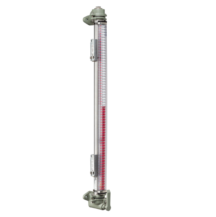 La medición se realiza a través de un tubo acoplado al contenedor que contiene un flotador cilíndrico con un imán permanente. La escala indicadora externa presenta una lectura clara y precisa del nivel de aceite, sin la necesidad de energía externa, lo que lo convierte en una solución extremadamente fiable y de bajo mantenimiento.